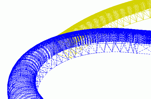 På hurtigmenyen i terrengmodelltegning, velg Verktøy - Beregn skjæring mellom triangelnett...