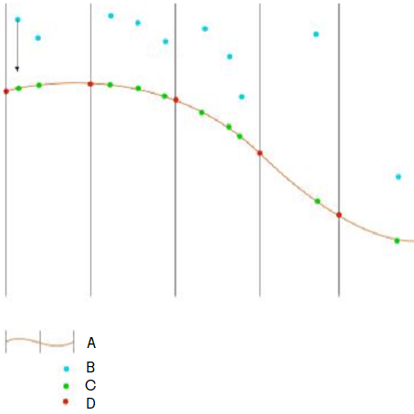 A* = Simulert duk, B = Originale punkt, C = Flytt eksisterende punkt, D* = Sett inn simulerte punkt