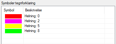 Du kan redigere symboler, justere rekkefølgen på symboler, og sette inn informasjonslinjer. Valgene for dette finner du på høyre museknapp i listevinduet for tegnforklaringen: