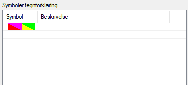 Bruk denne dialogen til å opprette nye eller redigere eksisterende tegnforklaringer. Du kan definere flere tegnforklaringer i et prosjekt, og sette dem inn i planvisning eller på ark i presentasjonstegning.