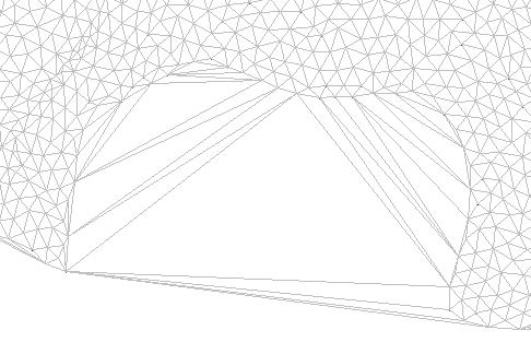 En tredje slettemetode er Slett lange kanter.... Skriv inn maksimal lengde på triangellinje og trykk Oppdater. Funksjonen starter i randsonen og går innover, og resultatet vises direkte i skjermen.