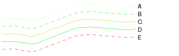 - Kotelinjer: Benytter høyder i linjer og polygoner