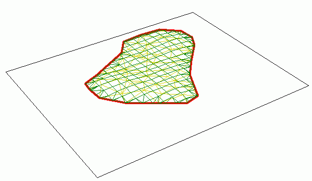Med valget Bruk høyder fra referansesjikt og legg til verdi blir høydene i referansesjiktet kopiert utenfor begrensningskonturen. Dette valget er aktuelt hvis du ønsker å kombinere data fra to ulike lag. En typisk problemstilling er at du har et digitalt kart for området, men har målt inn deler av området hvor du må ha høy nøyaktighet.