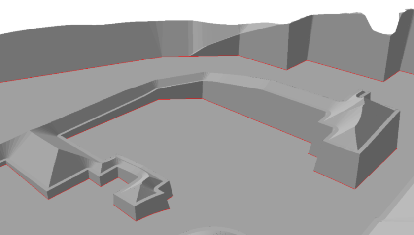 Polygoner med negativ omløpsretning (med klokken) vil snus før funksjonen utføres. Høyre side vil da vende utover, og skjæring/fylling bygges her. Ønsker du å bygge på venstre side av linjen (innover), må du endre verdi i kolonnen for side under Skj./fyll. parametre.