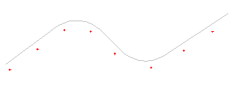 Hvis du huker av for å generere kurvepunkt, opprettes kun startpunkt, knekkpunkt (linje uten avrundinger), kurvepunkt (linje med avrundinger), og sluttpunkt på linjen.