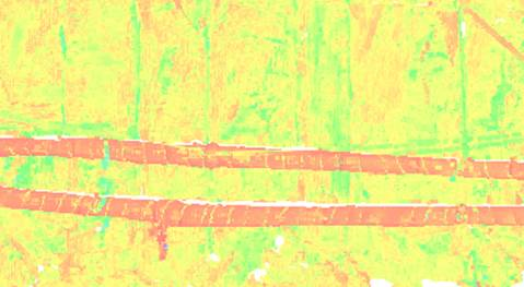 I eksemplet nedenfor har du to rør festet på en fjellvegg. Du ser at disse skiller seg ut når det gjelder intensitet, og dermed lett lar seg fjerne.