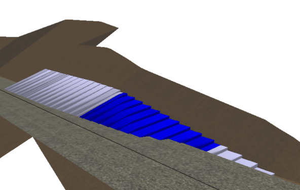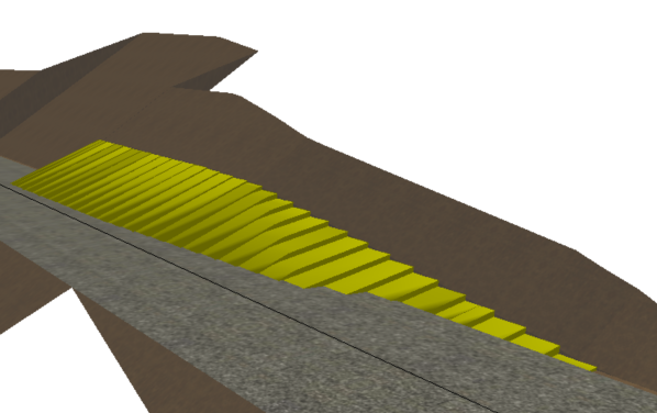 Eksempel på skjæring fjell, der massen er delt i objekter med 10 m lengde