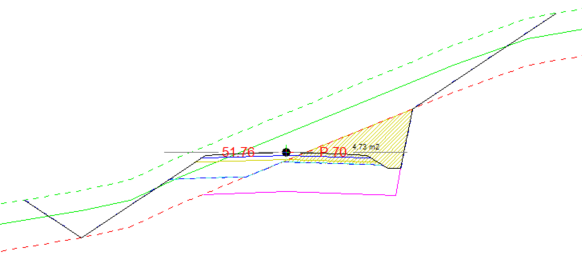 Eksempel på skjæring fjell, der tverrprofilene er generert med profilavstand 1 m