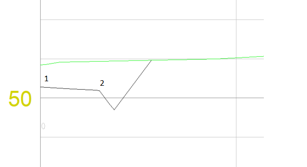 - Pek og trykk venstre museknapp i lengdeprofilet for å registrere startpunktet, vinkelpunktene og sluttpunktet.