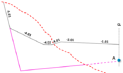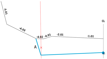 Laget for dypsprengning starter i senterlinjen. For dypsprengning oppgir du minimumsdybde, som blir verdien for startpunktet. Vegoverflaten er referanseflate for dybden.