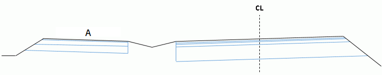 Du kan legge inn steinskråning og utgravingsskråning. Steinskråning starter i ytterste flate som har overbygning. Dersom du ikke har lagt inn utgravingsskråning, går denne til sluttpunktet i neste flate.