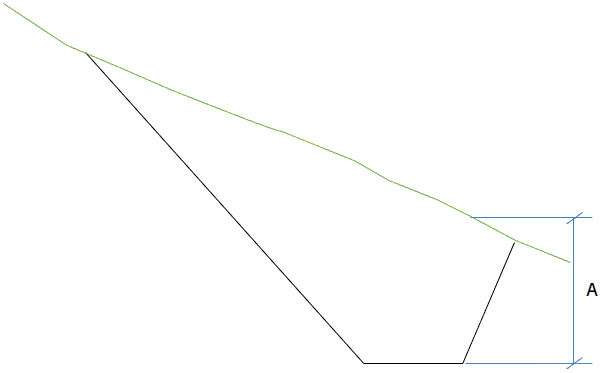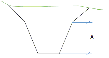For denne typen angir du to hellinger for grøftevegg i jord, men kun én brukes avhengig av grøftedybden. Det er høyden i senter grøft som det kontrolleres mot.