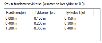 For gamle SFI-er vil det bli laget en linje i tabellen, for eksempel dim: 0,0, jordtykkelse: 0,15, fjelltykkelse: 0,15, fra enkeltverdien.