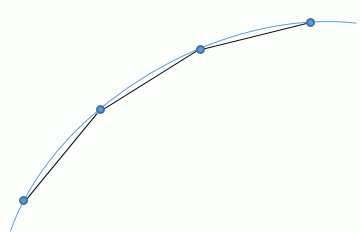 Programmet deler opp kurvene i linjestykker ut fra krav om maksimal sirkelavvik for triangler.