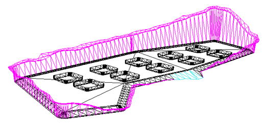 Triangelnettet for hovedflatene (flatene innenfor begrensningskonturen) bygger programmet på grunnlag av innlagte punkter og linjer i laget.