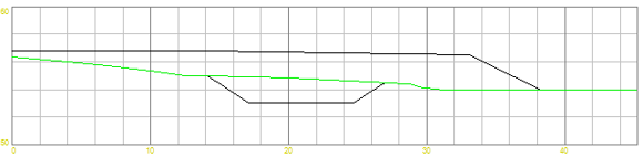 Triangelnettet for skjæring/fylling (flatene utenfor begrensningskonturen) bygger programmet på grunnlag av genererte profiler hvor begrensningskonturen er senterlinje. Parametrene for profilgenerering finner du under arkfanen Opsjoner.