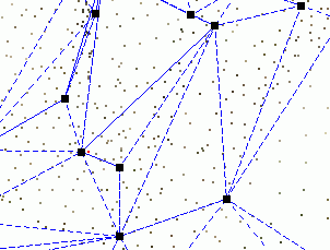 With this option you can edit triangle net with grips in 3D. You can only work with one triangle net at a time. You activate grips in the usual way via the status line. You then get grips on the 1000 nearest points around the sight line (focal point). In addition, the eye point must be closer than 50 meters. The point selection is dynamic and will change when you move in the model.