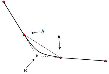 If the line contains arcs and clothoids, extra handles appear. By dragging these, you can dynamically change the line.