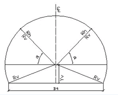 A temporary parallel to the tunnel profile's rotation surface is created through the road gradient's circle center. Where this parallel intersects the tunnel profile, you find the curve end point. Usually, this is 1.57 m above the vertical curvature.