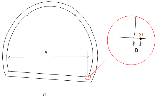 We want the tunnel width to be equal to the nominal distance between the connection surfaces, for example, -2.1 and 2.1. Since the tunnel is rotated with the road, we must move the intersection points between the wall and the road surface inward. With the Neutral contraction point field, you can control where this contraction will occur. If you select a point in the middle of the tunnel contour, you will get equal contraction on both sides.