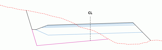 If the depth to the deep blasting layer at any point is less than the specified minimum depth, the deep blasting layer will be adjusted. The deep blasting plane will never be less than the specified minimum depth below the surface. The shape of the surface and the shape of the deep blasting determine where this point is located. In practice, it can be anywhere in the profile.