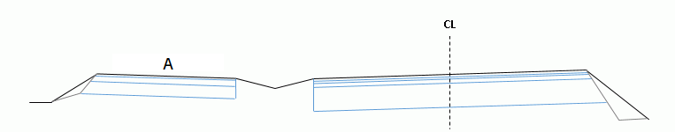 For example, in a simple pit, you only create half a road body along the boundary contour. This means you define road parameters only for the right side. By default, only cutting and embankment parameters are defined in the excavation pit, but you can add most available parameters to the list.