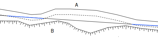 Blue line = Depth interval 0–1 m, A = Soil, B = Rock