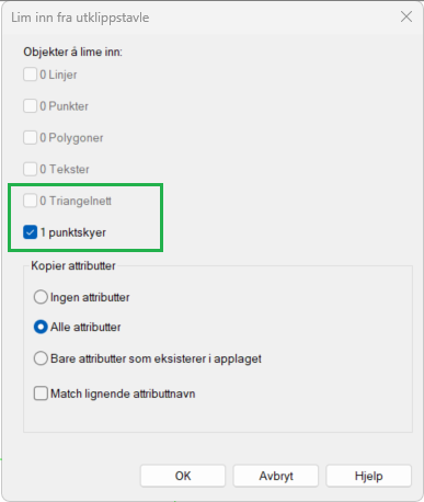 The Paste objects dialog has now received new fields for Triangular mesh and Point clouds.