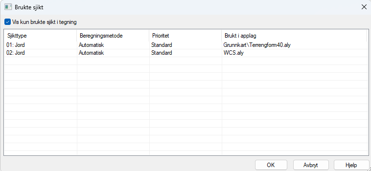 New Dialog with Overview of Used Layers