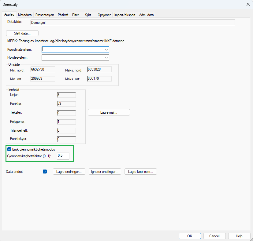 The program supports two different drawing modes in plan view: OpenGL and GDI. These have different properties and are used for different purposes. Transparency mode on application layers is only possible when OpenGL is enabled. You can find the function to turn OpenGL on/off in the tools menu.