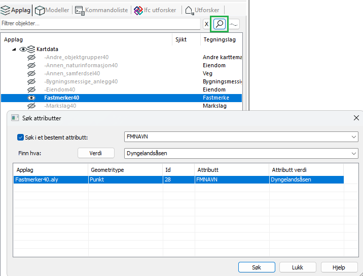 When you select an object in the result list, the corresponding application layer is automatically highlighted in the application layer list. If the application layer is in a collapsed group, this group will be expanded so that the application layer becomes visible.