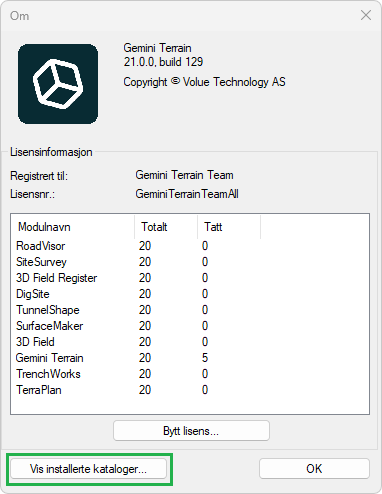 This overview has been moved from Gemini Terrain Settings... to the dialog for Help - About.
