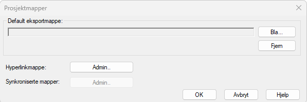 Standard export folder is set up directly in the dialog. Press Browse... to select a folder. In cloud projects, you will be asked if you want to make the folder a synchronized folder when you exit the dialog, if the folder is not already synchronized.