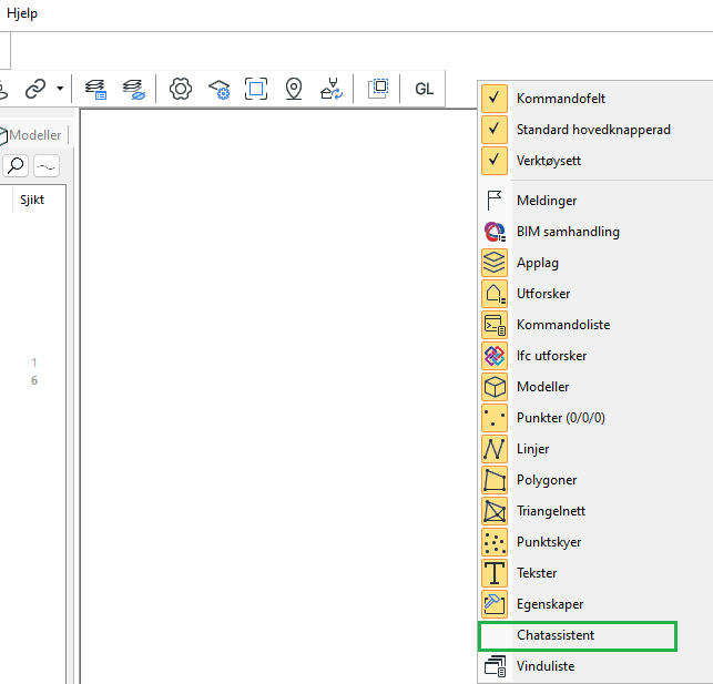 To activate the chat assistant window, right-click to the right of the toolbar.