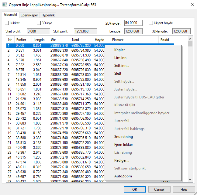 A small comment on the Excel functions since these do not have dialog help. Points and lines can be pasted from Excel. Note that we must also include column headers from Excel. A tip can be to copy an object to Excel first. Then we get the column headers included. Points in Excel must at minimum contain Id, East and North.