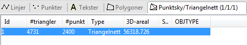 For this type of data, we can run an iterative triangulation. We must specify parameters for cell size and maximum deviation between result and original points as in the 3D triangulation described below. We will then automatically have unnecessary points removed in relation to the specified parameters. This will in practice mean fewer points in flat areas.