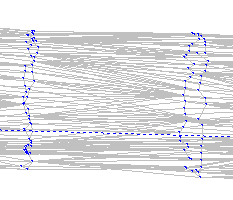 The problems are related to the break points in the line. The program performs a mathematical "mapping" of the points before a 2D triangulation is performed. In this operation, the program calculates, among other things, profile number and distance. As we see from the figure below, we get a "blind zone" around the break points where the points will get the same profile number.