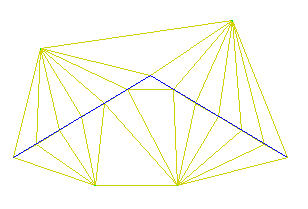 The line can either be a line in an application layer or a line in an SFI model. We can say that the method in Gemini Terrain is an indirect Delaunay triangulation. Based on the line, the points are unfolded to a mathematical plane, subjected to standard triangulation, and folded back.