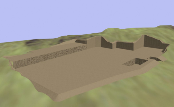 You can visualize constructed building excavations in render mode. You can link the triangular networks (main and side networks) in each layer to render materials.