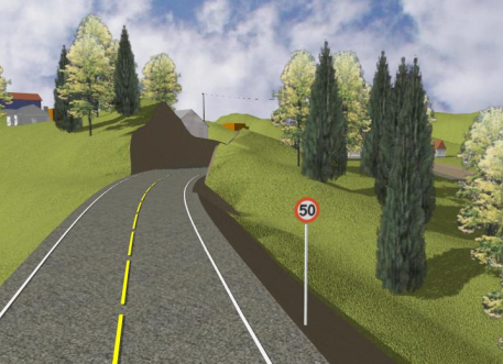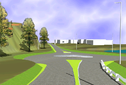In Gemini Terrain you can design roads and intersections. They can be calculated and displayed simultaneously in plan and 3D, and visualized directly with full surface filling.