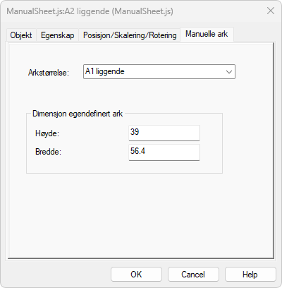 Fyll ut som vist under (her må du gjerne prøve deg litt frem for å finne verdier som passer til valgt ark):