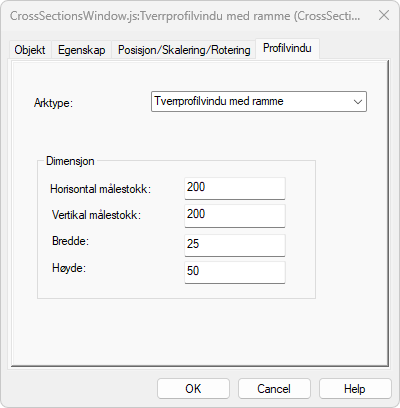Velg ikonet Vindu for tverrprofiler på verktøyboksen.