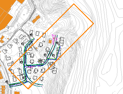 Når du skal lage kartutsnitt for et lengdeprofil må du ha åpen lengdeprofiltegningen og plantegningen samtidig. Dersom det er definert en plassholder for kartutsnitt i arket vil programmet automatisk hente dette.