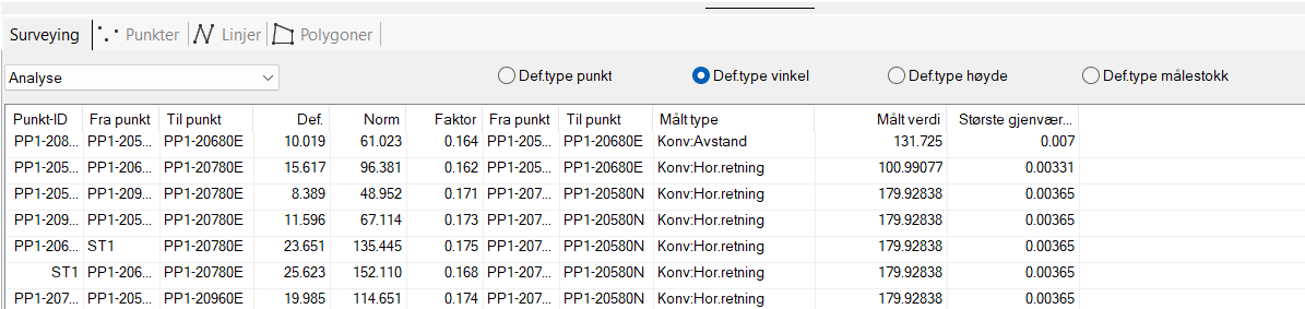 Programmet vil låse et minimum av punkter. Prosessen videre er at en grovfeilsøking automatisk startes for deretter å kunne beregne Største gjenværende grovfeil, Maks. relativ grovfeil og redundans.