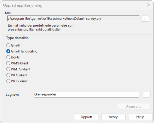 Dette åpner dialogen for egenskaper til Gmi-fil landmåling.