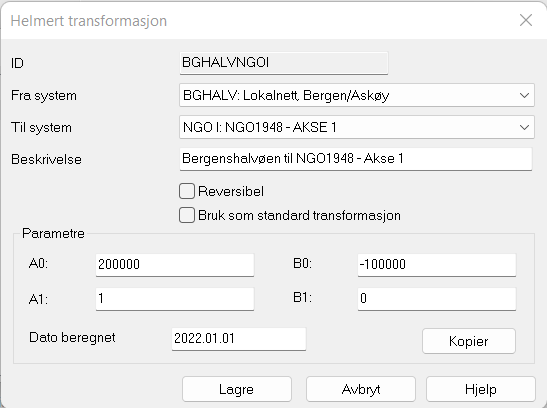 - Fra BGHALV til NGO akse I med bruk av Helmert transformasjon.