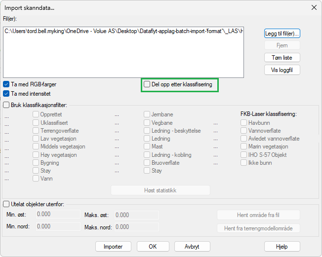 Import av klassifiserte punktskyer (LAS/LAZ)