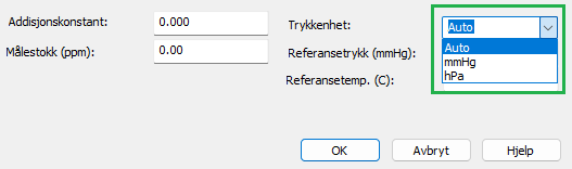 Vi har derfor innført trykkenhet, Auto, mmHg og hPa, som et valg på instrumentet.