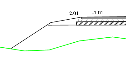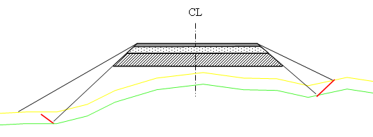 Detta betyder att du kan bygga varierande överbyggnad i halvskärningar, det vill säga att programmet väljer överbyggnad för jord i fyllning och överbyggnad för berg i skärning.