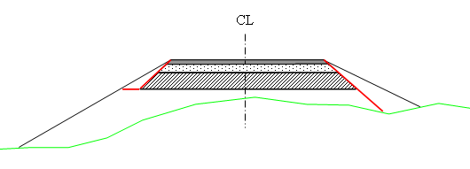 - Jordskärning och fyllning: Visar överbyggnad för jordskärning och fyllning använd i sektionen du står i